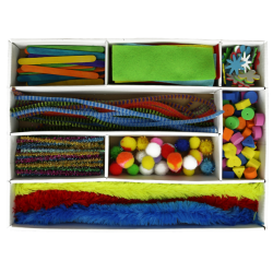 Mega knutselpakket, bestaande uit meer dan 1200 onderdelen om heel veel vrolijke projecten te maken.